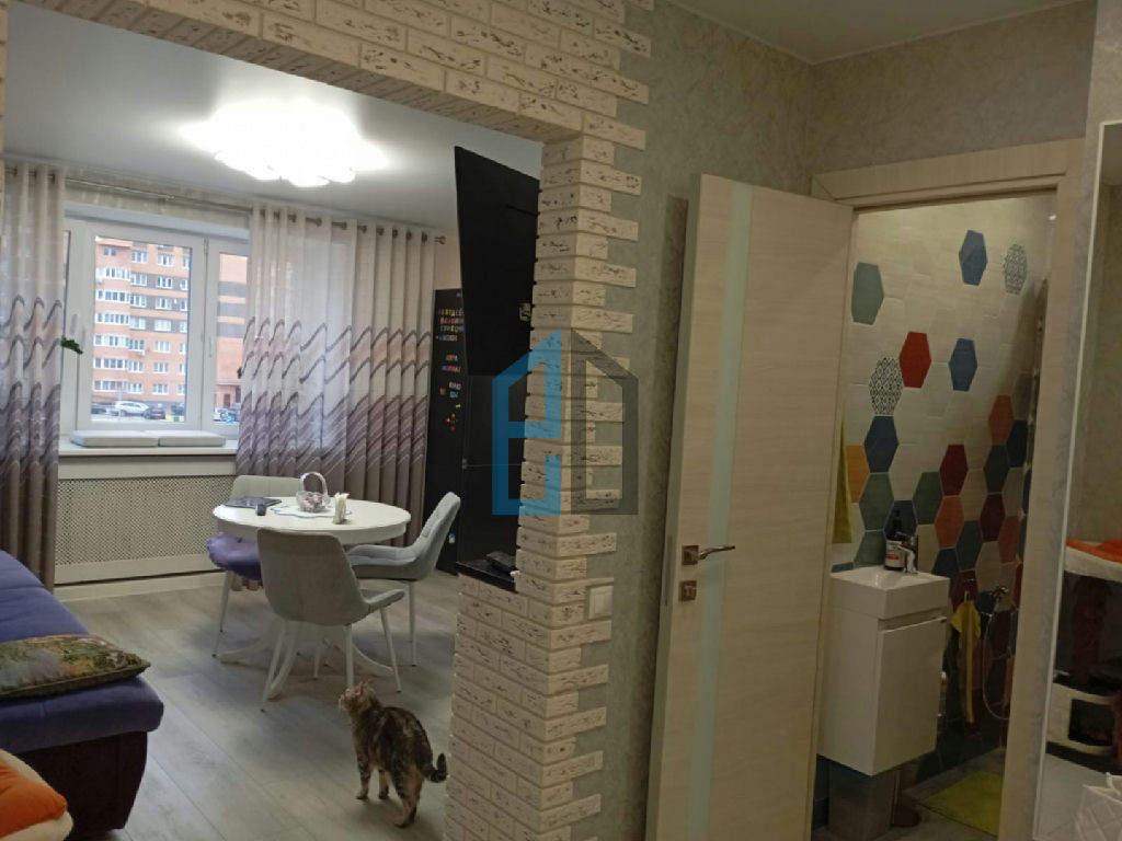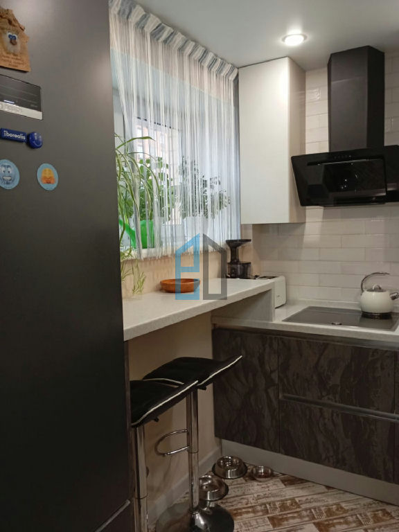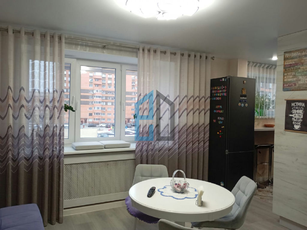 Кухня-гостиная с обеденной зоной. Подоконники на кухне-большие и надёжные, на которые удобно присаживаться.